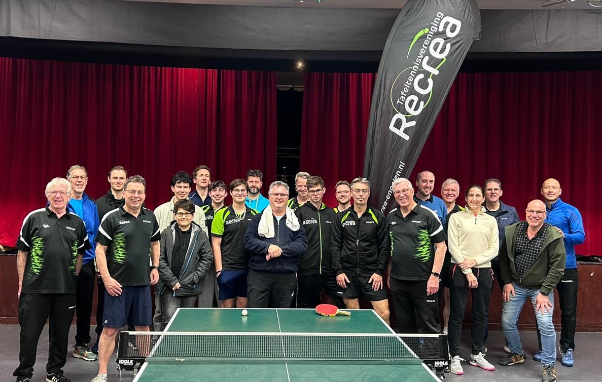 Er waren 25 deelnemers, waarvan circa de helft Recrea lid was. De leeftijden varieerden van 14 tot 77. Er werd gespeeld op 3 niveau’s; recreanten, gevorderden (2 poules) en competitiespelers. Er werd fanatiek gespeeld onder de strakke toernooileiding van Bart de Visser. De poule-indelingen bleken goed gemaakt, want iedereen haalde minimaal 1 punt in zijn/haar poule. Er kwam veel talent boven; zo bleek gastspeler Greg met een geleend batje toch een hele moeilijke service te kunnen spelen waar ook ervaren Recrea spelers geen antwoord op hadden. Yvon had ook veel talent, meer werd toch laatste in haar poule puur omdat ze een slecht batje had. Speciale vermelding ook voor onze jongste deelnemers Isaac en Sibren; ze spelen pas relatief kort, maar je ziet het niveau snel stijgen.