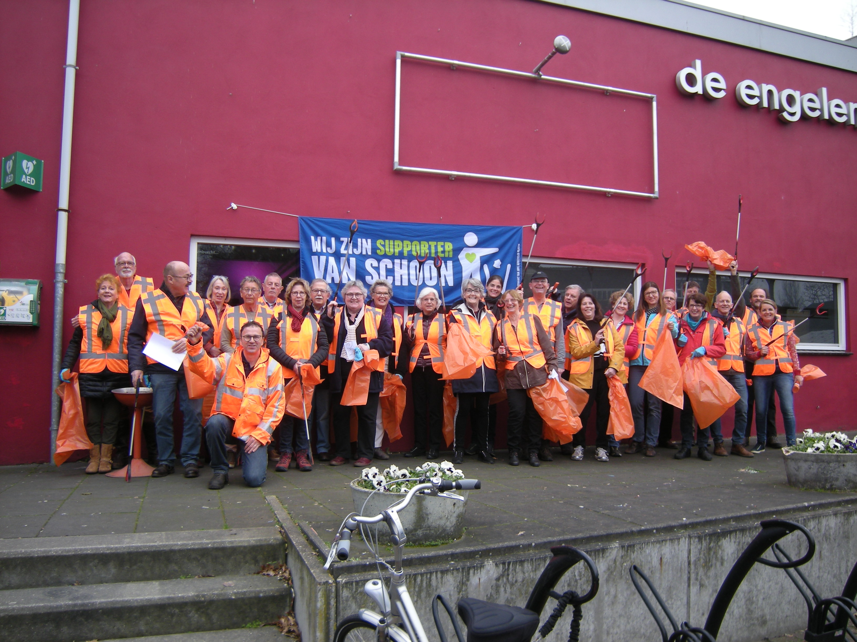 Op zaterdag 23 maart jl. organiseerde de gemeente ’s-Hertogenbosch weer de jaarlijkse zwerfvuilactie en haakte daarmee in op de landelijke opschoondag. In de hele gemeente gingen 1300 personen aan de slag. In Engelen en Bokhoven waren de mensen van de Protestantse kerk, het Kadekoor, bewoners van Velderwoude en Wuijvenhaerd en de Stichting Welzijn Bokhoven actief. Na een welkom door Martien van Gorkom van de gemeente ging men gewapend met grijpers, oranje hesjes, handschoenen en vuilniszakken op pad.