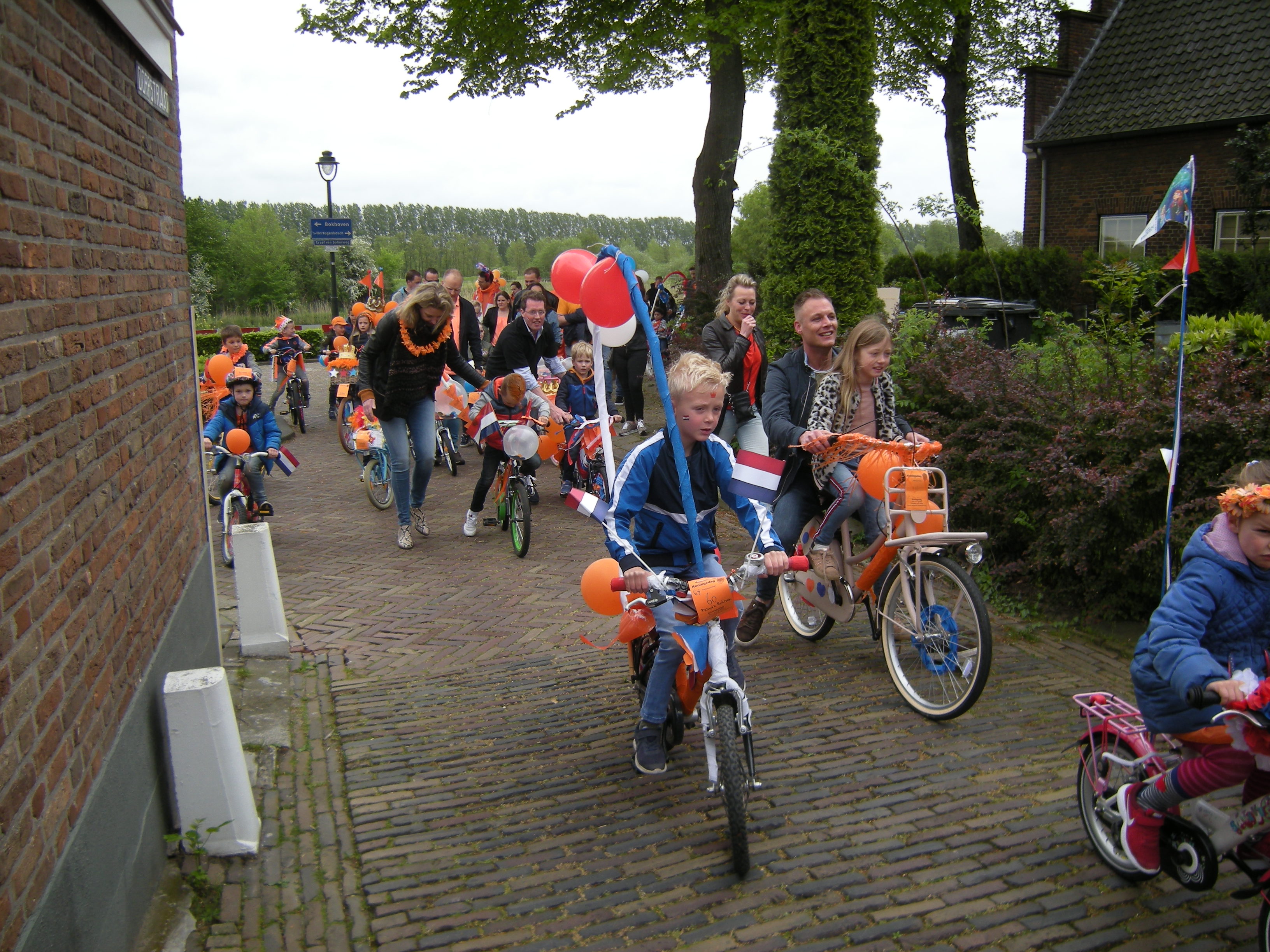 De dag begon met de traditionele versierde fietsenoptocht begeleid door harmonie Oude Post. Ruim 80 fietsers deden er mee en vooraf kon de jeugd op woensdag- en vrijdagmiddag de fiets al komen versieren. Terug bij De Engelenburcht reikte Yvonne Schram namens de bestuursraad aan de winnaars de prijzen uit en was er gratis koffie met oranje-soesjes.